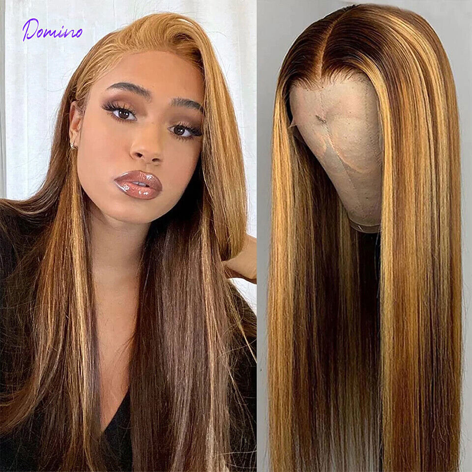 Highlight Bone Straight Lace Front Human Hair Wig Honey Blonde Transparent Remy Ebay